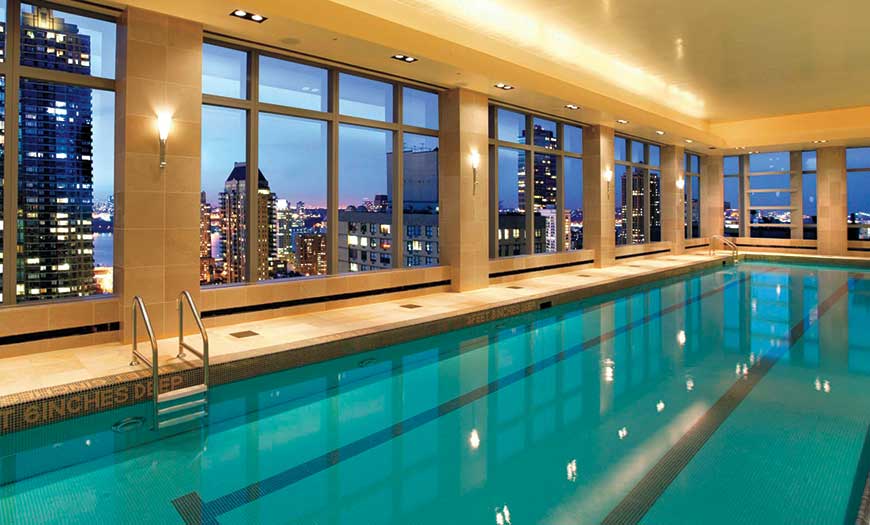 Located on the 36th floor in the Time-Warner Center hotel, the Mandarin Orientalโs gym and 75-foot lap pool offer a stunning view across the Hudson. The fitness center features sophisticated TechnoGym cardio machines and kinesis equipment, which uses cables to work different muscles simultaneously, so gym-goers can get almost an entire workout with only one machine. The Mandarin gym also provides Smartwater, citrus-infused water and teas. Pre-loaded iPods are available as well.