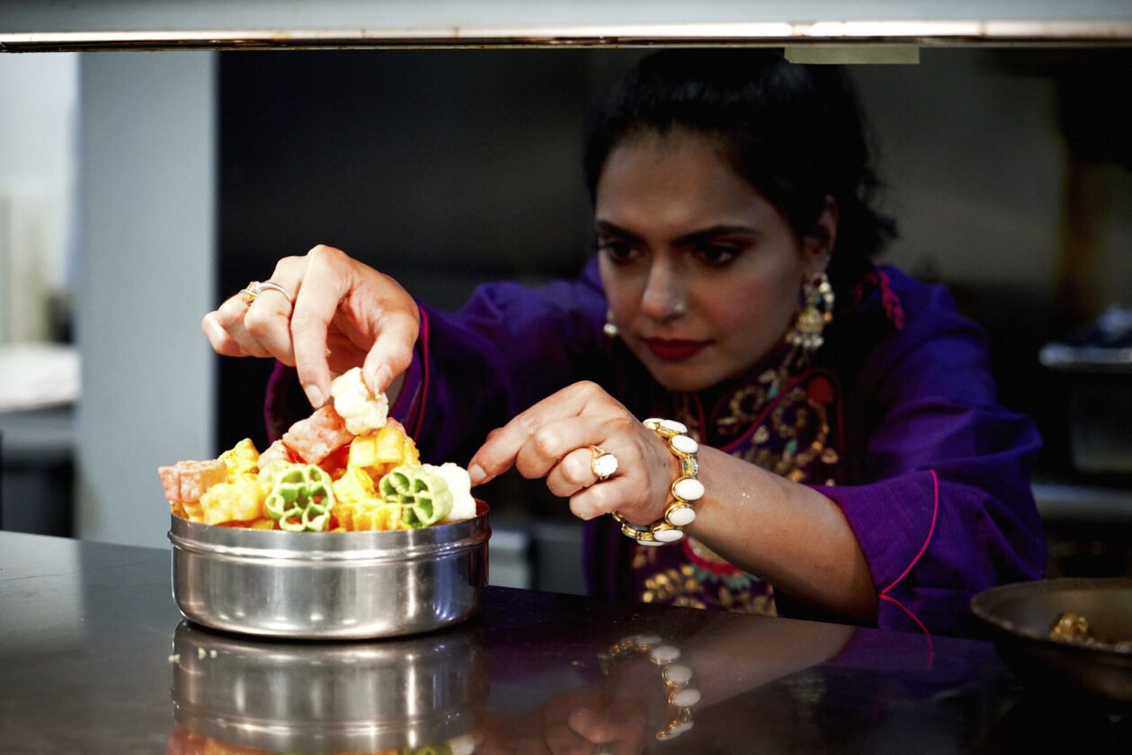 “I am a slightly difficult person to ask this question because I came from India. And in India I literally did my externship in kitchens where I was the only girl in a kitchen of around 60 to 70 men,” she says. “And so to me when I came over here and I would find even another female chef, to me I would be like, ‘Oh, we are already so far ahead of the game.’ So I find that question slightly difficult only because I literally came from a place where people will literally [be] like, ‘Oh you’re learning, you’re in the kitchen trying to be a chef because you want to learn how to cook for your husband.’ So, yeah. So like the bar was so low for me that anything beyond that was higher.”