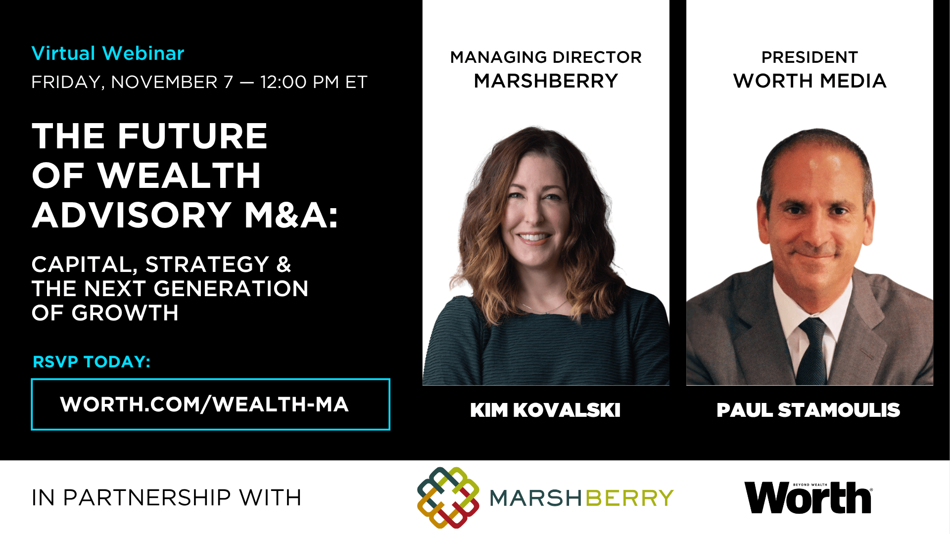 We explored how consolidation, capital, and strategic leadership are reshaping the independent wealth management landscape. Led by Paul Stamoulis, Worth Media President and Kim Kovalski, MarshBerry Managing Director, this session dove into the forces driving merger & acquisition activity, how founders can adopt an investor mindset, and key lessons learned from guiding firms through transformative deals. Insight was shared on how to position your firm for long-term success in a rapidly evolving market.