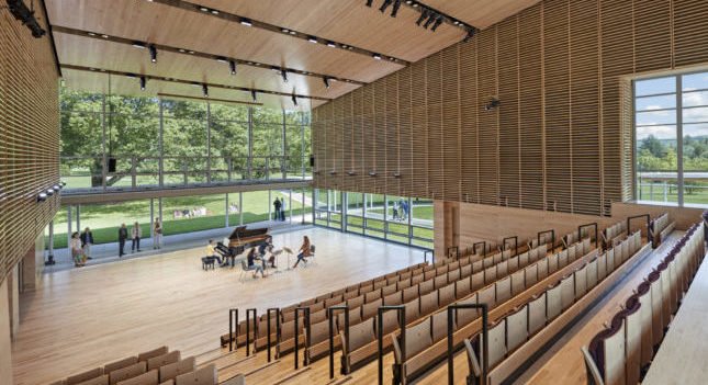 The new Linde Center, a four-building, 6,000-square-foot complex designed by William Rawn Associates, will house the Tanglewood Learning Institute (TLI). Positioning itself as a year-round, multidisciplinary arts destination, TLI will offer master classes, artist lectures and screenings in partnership with the Berkshire International Film Festival and art courses with IS183 Art School of the Berkshires. Among the center’s debut offerings: a talk on nation building by former secretary of state Madeleine Albright, timed to a performance of Giuseppe Verdi’s Requiem; interactive master classes with the Juilliard String Quartet and a discussion with performance artist Meow Meow.
