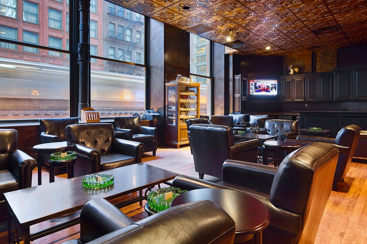 In 2008, Illinois passed a law banning smoking in public spaces, including bars and restaurants. One of the few businesses exempt from that law were cigar shops—provided that 80 percent of their revenue came from tobacco sales and that they’d been open for three years before the law’s passage. In response, Levi decided to build customers a smoking lounge, where they can pay $15 a visit or purchase an annual membership $750 per year. Because of Illinois alcohol regulations, it’s BYOB, but Levi provides glassware and ice at no cost. For another $350 annually, members can rent humidified lockers where they can store cigars and liquor. Levi says the lounge has around 110 members.