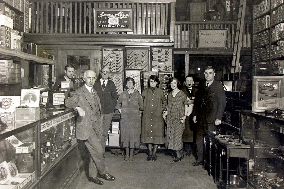Levi credits Ries (pictured front, left) with expanding the shop’s pipe business, which remains a backbone of the company. “At that time,” Levi recalls, “we were really one of the only places in town catering to the pipe smoker, which we still do.”