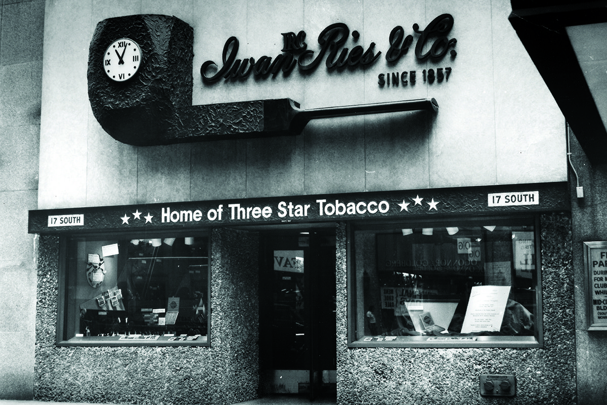 Above, Iwan Ries’ 71 West Monroe Street shop in Chicago’s East Loop neighborhood.
