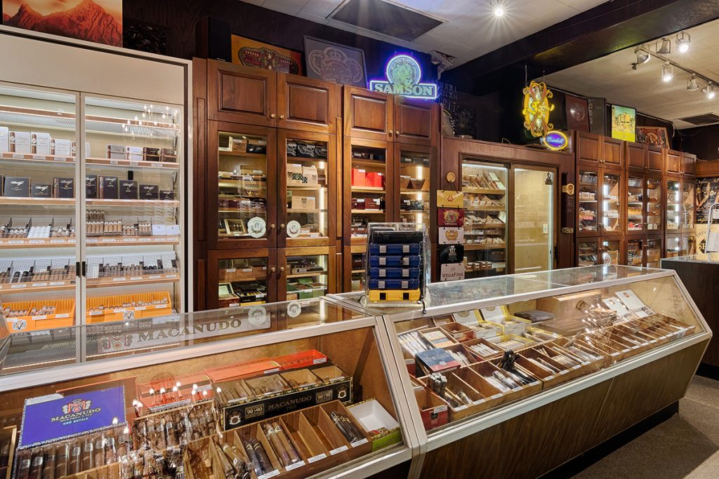 Humidors and cigar display cases line the walls of Iwan Ries. “The cigar cases in front were custom built for us back in the ‘40s,” says Levi. Although most cigar shops built now have walk-in humidors, lining the wall with humidors works for Iwan Ries.